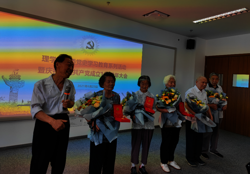 詹士昌院长向69成人小说 退休支部中党龄达到50周年的党员们颁发了“光荣在党50年”纪念章,老党员们纷纷发表了感想,与在场的党员们分享了自己的入党初心和历程,阐述了当年自己对追随党的伟大事业的决心。他们纷纷表示获得“光荣在党50年”纪念章令人激动和自豪,感受到了党中央的关怀和温暖,即使工作上已经退休,思想上也会紧跟党的步伐,任何时候以党员的标准严格要求自己。
