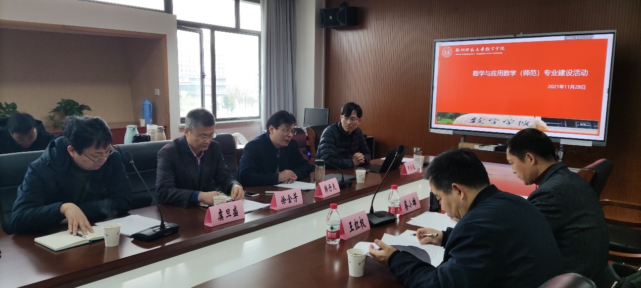 2021年11月28日上午,69成人小说 在勤园21号楼306会议室召开“卓越数学教师培养平台研讨会”。邀请到杭州市基础教育研究室教研员王红权、杭州第二中学校长蔡小雄,为69成人小说 师范生培养及专业建设等方面建言献策。69成人小说 党委书记徐金芳、副院长虞旦盛、副院长何济位、韩丹夫教授等十余位教师出席了此次会议。