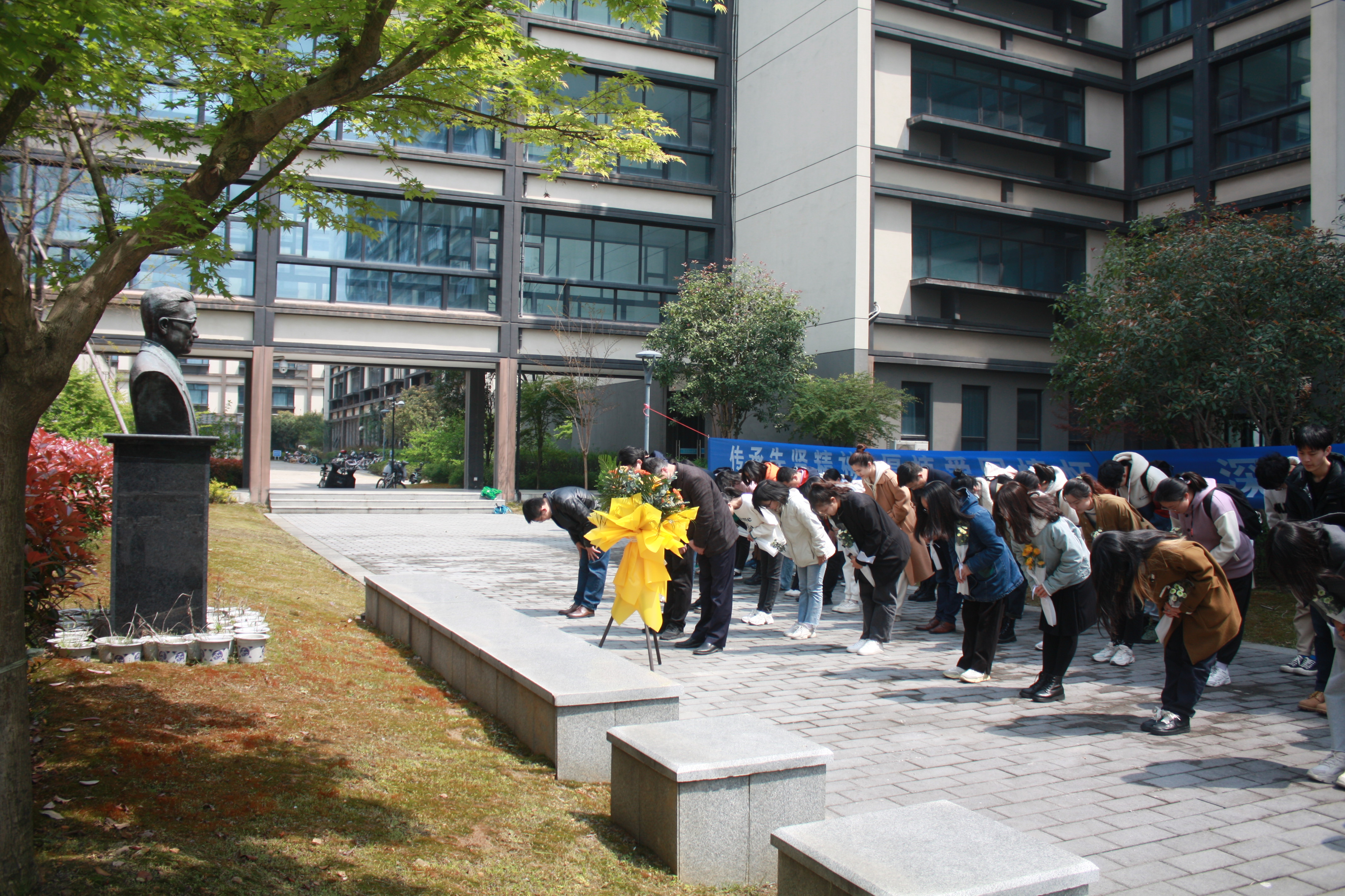 4月2日,在清明节来临之际,为厚植爱国情怀,传承先贤精神,缅怀陈建功先生对我国数学研究和教育事业的卓越贡献,学院在陈建功塑像前举行缅怀杰出校友陈建功先生仪式,继承和弘扬他一生坚持和倡导的爱国、求真精神。