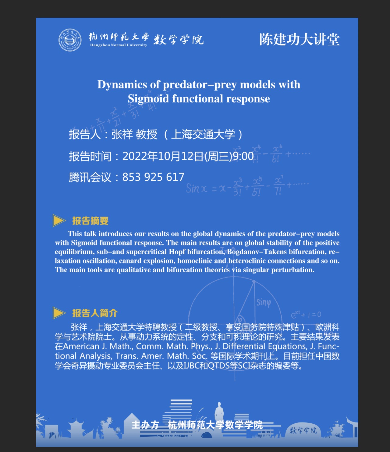陈建功大讲堂:Dynamics of predator-prey models with Sigmoid functional response