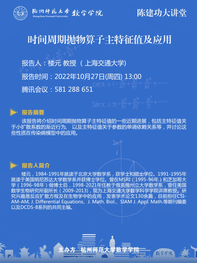 陈建功大讲堂:时间周期抛物算子主特征值及应用