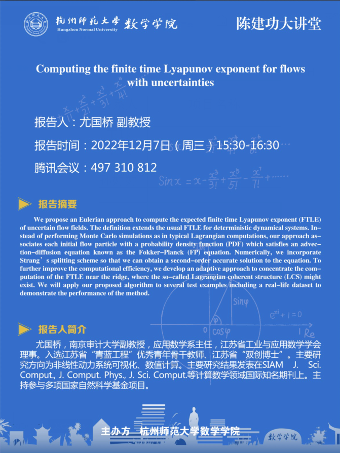 陈建功大讲堂: Computing the finite time Lyapunov exponent for flows with uncertainties