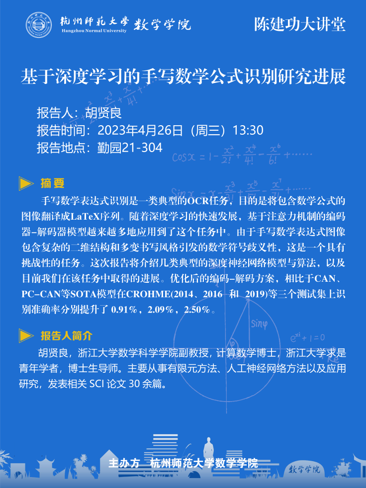 陈建功大讲堂:基于深度学习的手写数学公式识别研究进展