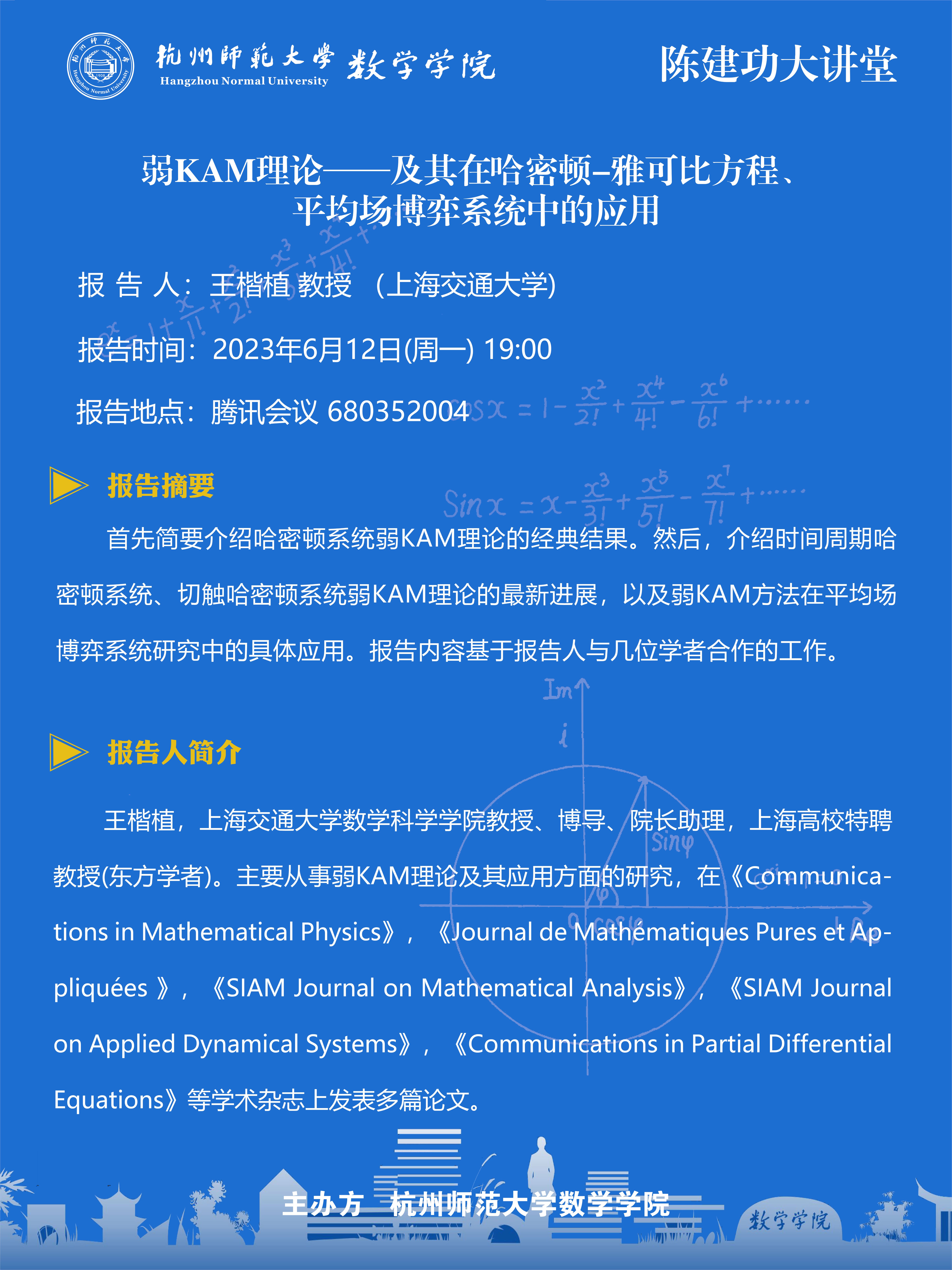 陈建功大讲堂:弱KAM理论——及其在哈密顿-雅可比方程、平均场博弈系统中的应用