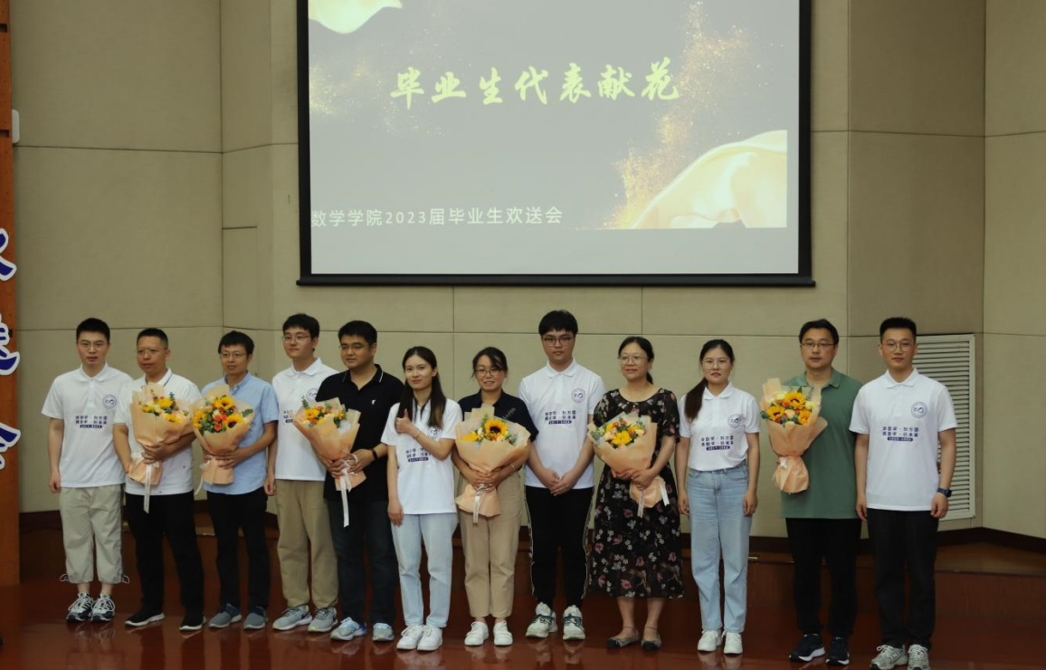 毕业生代表数学192班仲卓帆同学发表毕业感言,他带我们回忆师大青春、勇担社会责任、厚植家国情怀,“青春由磨砺而出彩,人生因奋斗而升华”,他表示无论走到哪里都会铭记留在师大的青春记忆。毕业生代表数学192刘艺萍同学、2020级研究生学硕班杨杰同学向学院赠送毕业纪念品。六棵樱花树从吐芽到开花,从矮小到枝繁叶茂,数院学子和它们共同成长着。师恩难忘,同学们也为班主任与辅导员献花,表达了自己对老师们的感恩之心。
