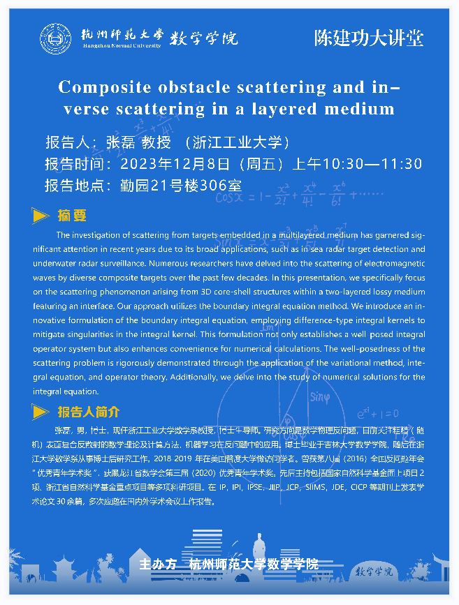 陈建功大讲堂:Composite obstacle scattering and inverse scattering in a layered medium