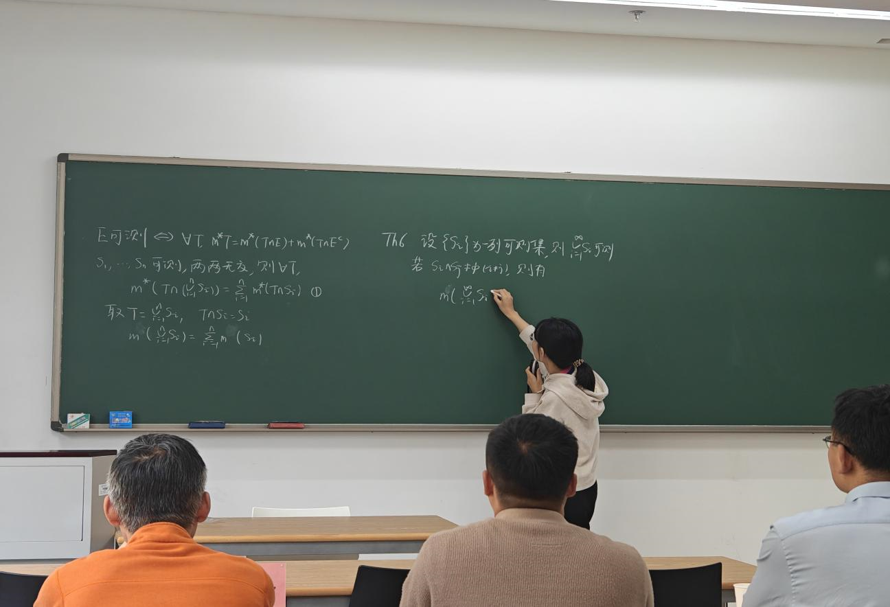 本次比赛共设两个组,两组教师同步进行教学展示。在限时二十分钟的课堂内,13位教师各展风采,充分利用板书、多媒体课件等教学工具,就可测集、洛必达法则、初等矩阵等内容展开教学。比赛结束后,评委就课堂内容与参赛教师展开讨论,并根据其教学表现提出相关建设性意见,如教学节奏调整、合理安排课堂内容、增加师生互动等等。