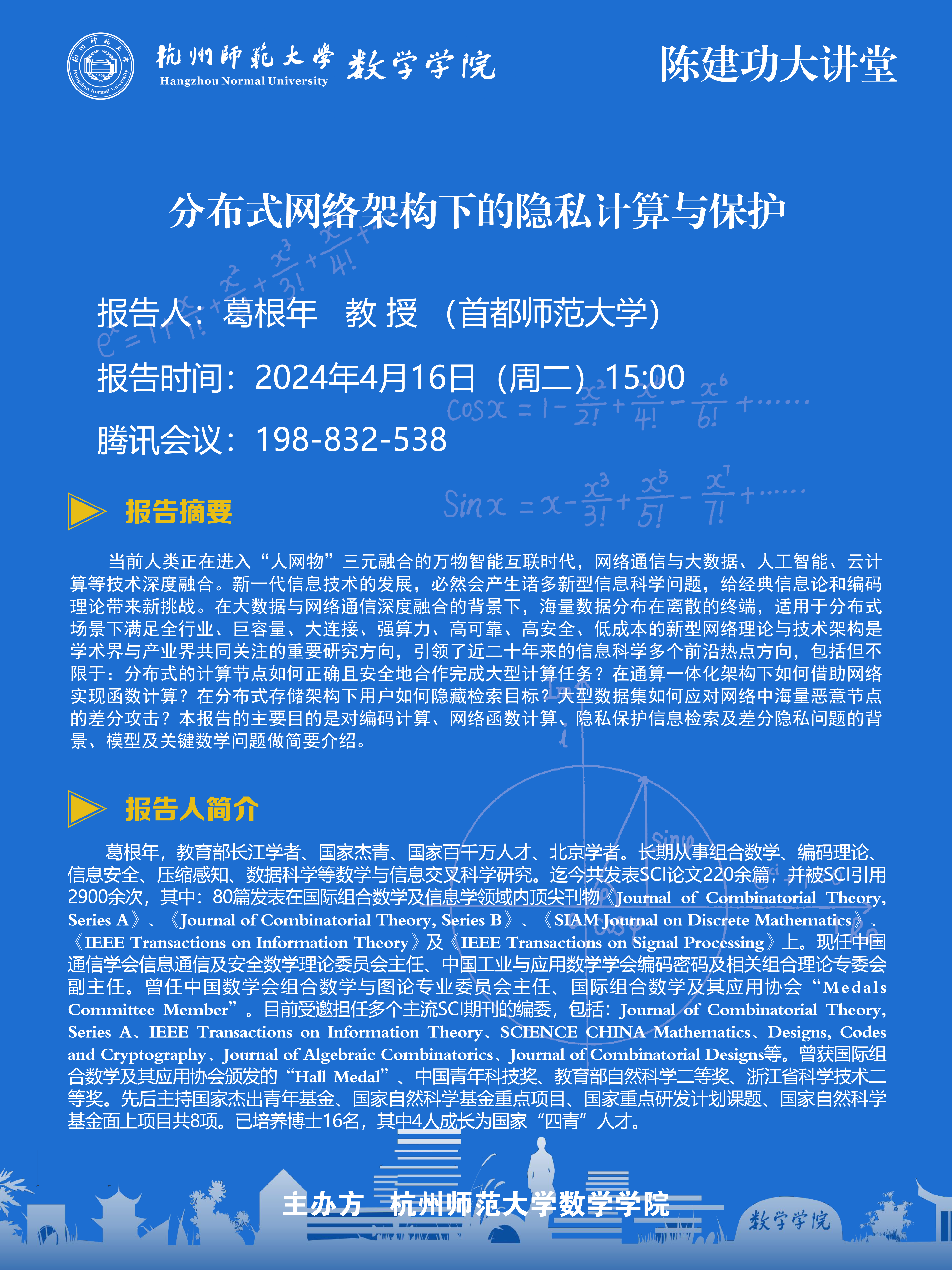 陈建功大讲堂(2024-21):分布式网络架构下的隐私计算与保护