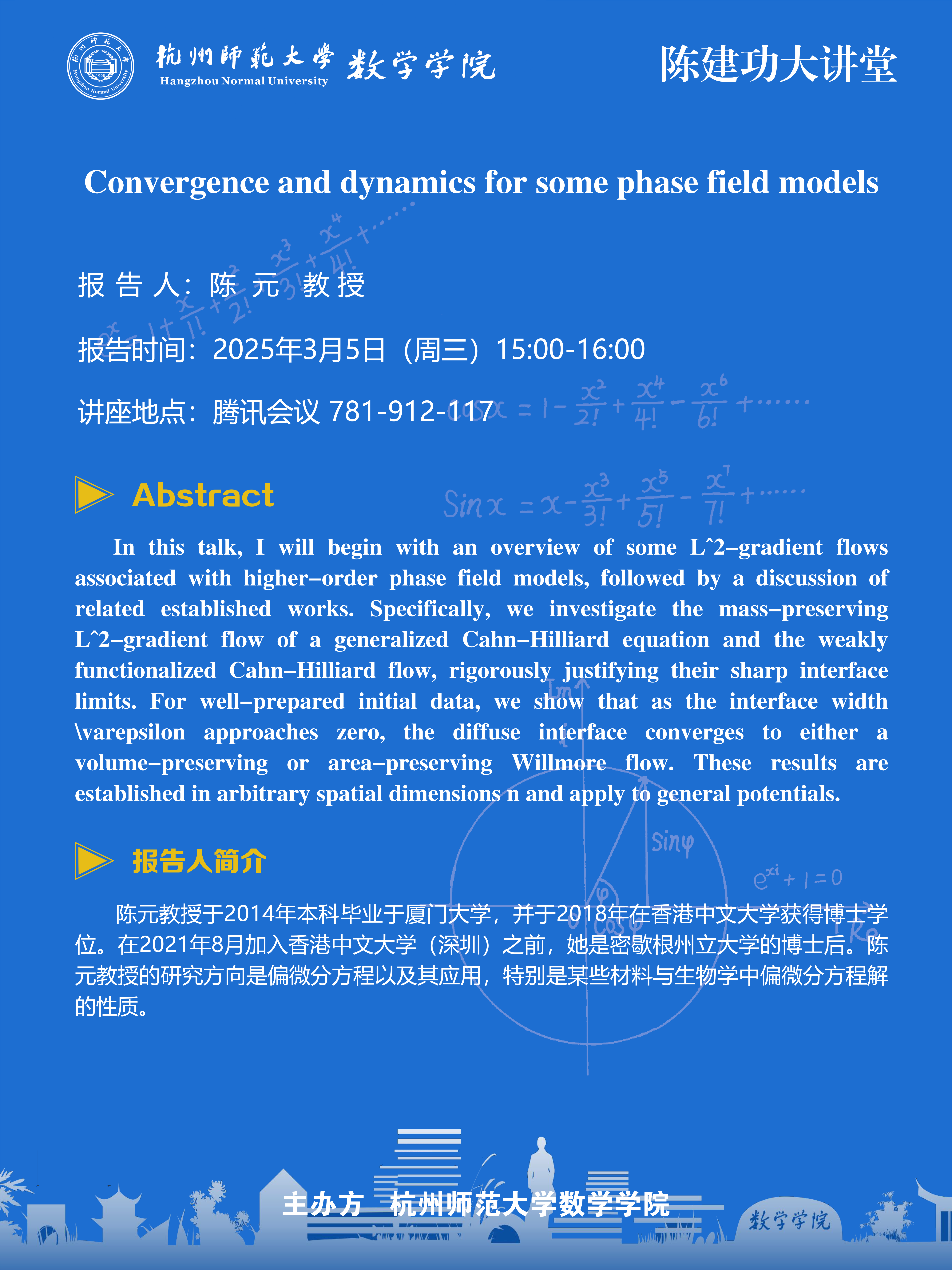 陈建功大讲堂(2025-8):Convergence and dynamics for some phase field models