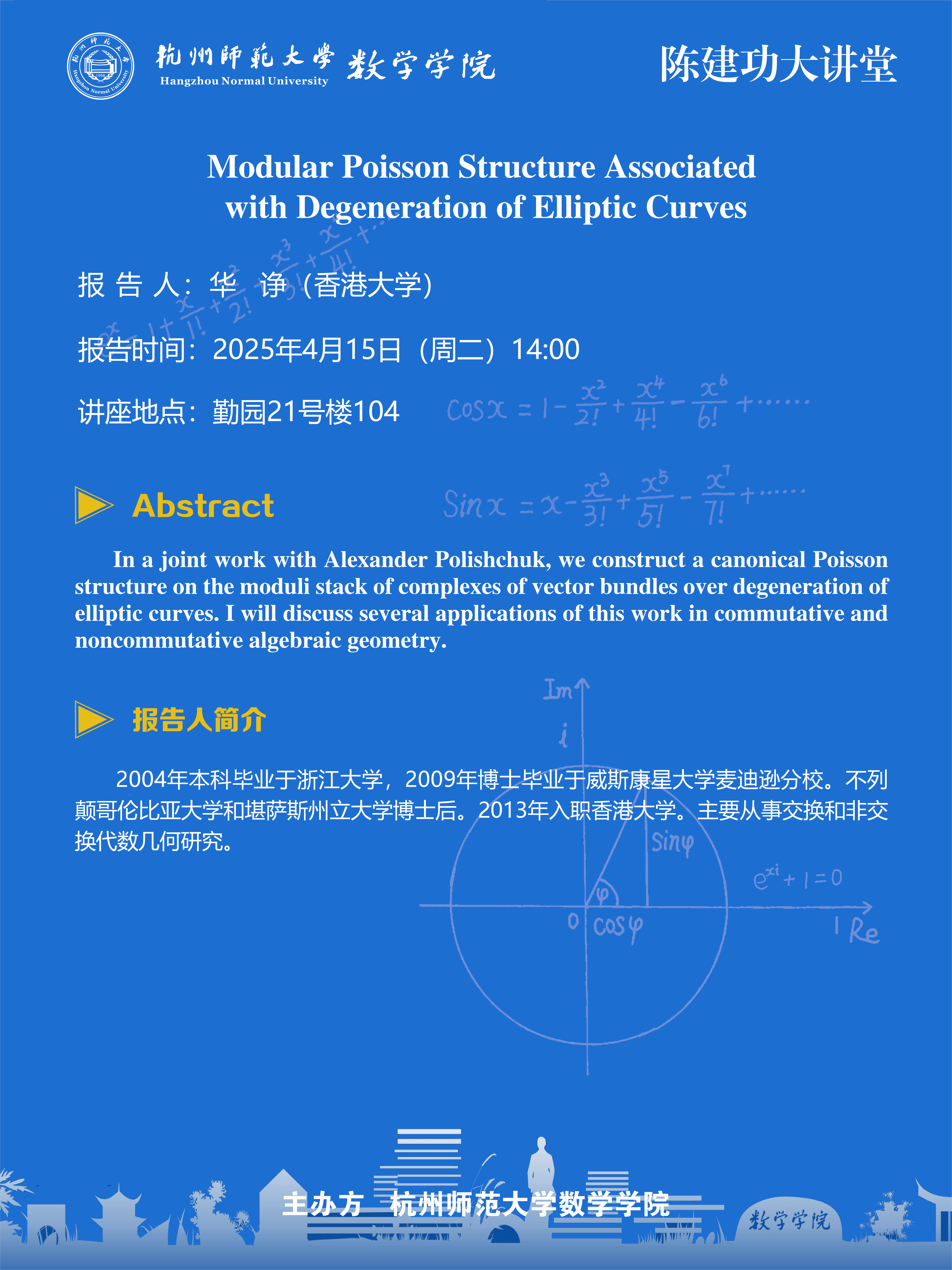 陈建功大讲堂(2025-19):Modular Poisson Structure Associated with Degeneration of Elliptic Curves